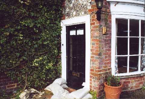 sandbags around the door due to flooding!)